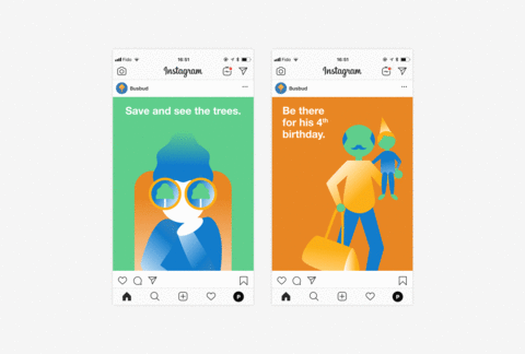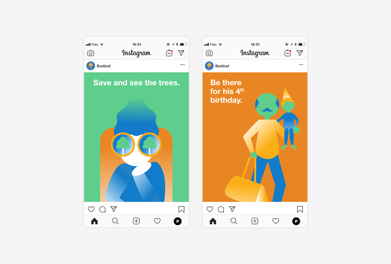 Busbud is an online platform allowing travelers to easily plan and reserve their bus transporations everywhere on the globe. The mandate was to make the brand shift from a service provider to a trip guide that inspires confidence. The new visual identity and communication campaign is colourful, playful and aspiring, helping travelers forget about the stress related to transport planification hassles.