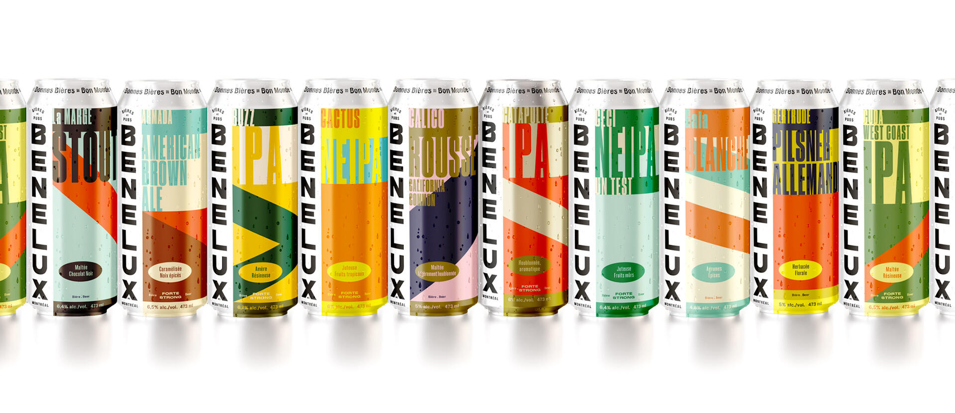 Benelux, c’est une micro brasserie, deux broue-pubs, des dizaines de bières et des bons vivants qui font rouler cette institution montréalaise. Voulant prendre d’assaut le commerce au détail, l’entreprise nous confie le mandat de revoir son identité de marque de fond en comble.