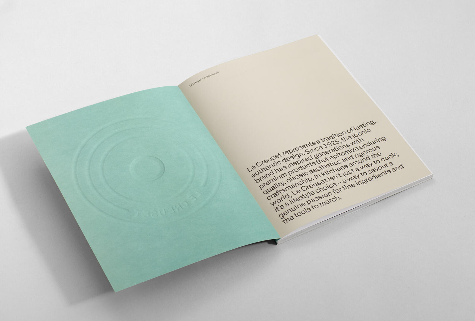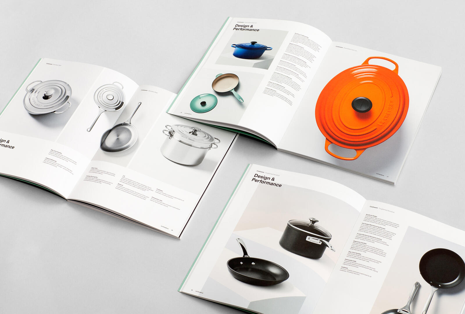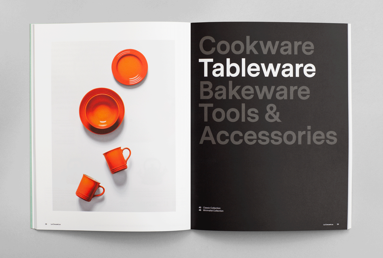 À chaque année, Le Creuset Canada publie un vaste catalogue répertoriant l’ensemble de leurs produits, destiné aux détaillant canadiens. D’abord un défi de taille que de mettre en page une collection aussi imposante et variable d’année en année, l’objectif ultime est de séduire au premier coup d’œil par une direction artistique soignée, présentant l’objet comme une véritable œuvre d’art.